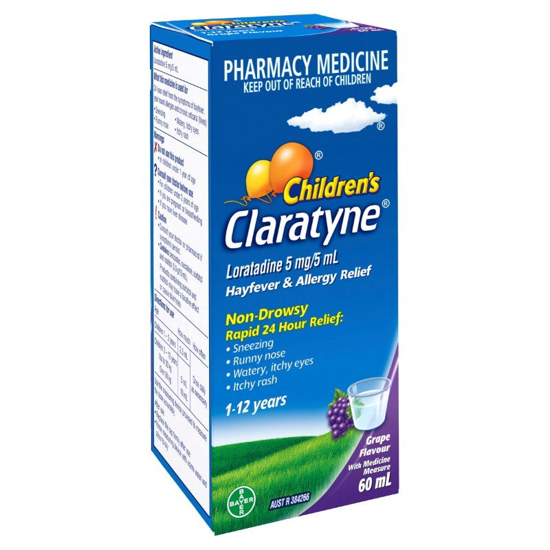 Children's Claratyne Grape Syrup provides rapid 24 hour, non-drowsy relief from hayfever, year round allergies and chronic urticaria (hives).
