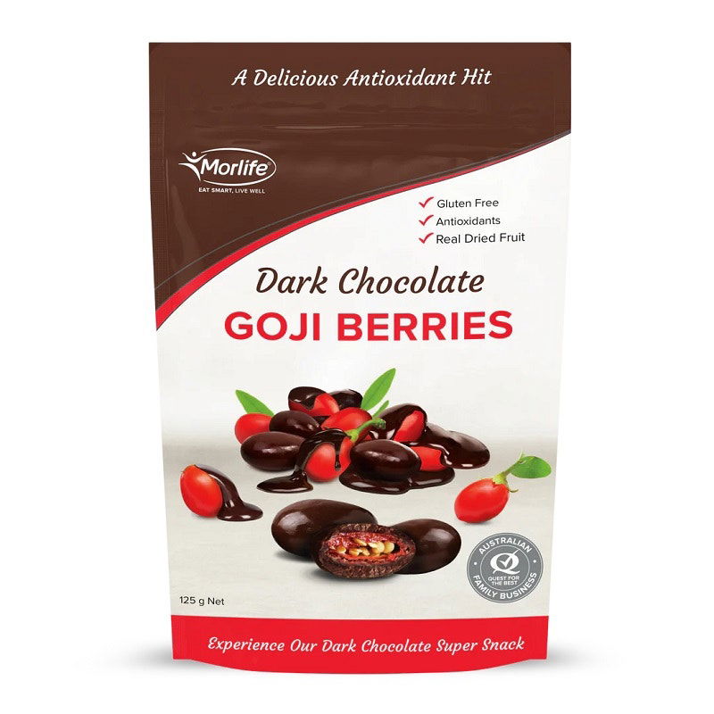 Enjoy a delicious Antioxidant Hit. Morlife has created the ultimate indulgence, with delectable dried goji berries coated in premium dark chocolate, creating a deliciously decadent treat. A match made in heaven with dark chocolate and goji berries both containing potent polyphenol antioxidants.