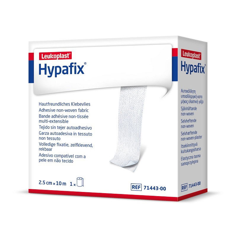Hypafix is a self-adhesive, non-woven fabric sheet for secure and rapid fixation. It is made from white polyester material and coated with hypoallergenic adhesive on quick-release backing paper. Hypafix also provides complete coverage of the entire dressing, thus reducing the risk of contamination. Its excellent conformability simplifies shaping around joints and awkward body contours to allow the patient greater freedom of movement. The tape is permeable to both air and moisture, helping to reduce the risk of maceration. Hypafix is also radiotransparent, so it does not have to be removed for either radiotherapy or X-ray examinations. Benefits •Combines security with comfort •Highly conformable •Provides reliable fixation for catheters and drainage tubes •Reduces risks of casual contamination •Allows joints to be dressed without constraining movement Indications •Retention of post-operative wound dressings •Retaining gauze and absorbent pads •To secure catheters and drainage tubes
