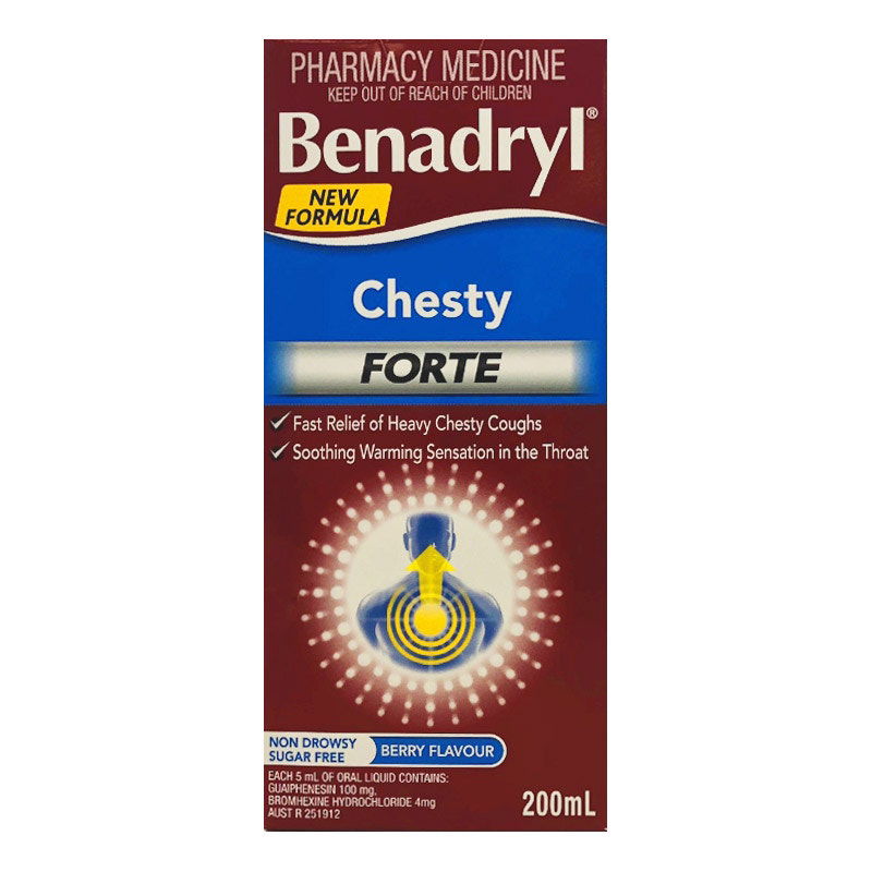 • The combination of both these ingredients makes Benadryl Chesty Forte effective in relieving symptoms of a heavy chesty cough