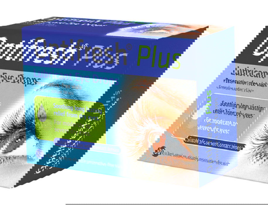 Optifresh Plus Lubricating Eye Drops 30 x 0.40ml Re-usable Vials• For moderate to severe dry eyes• Preservative-free sterile re-closable vials• Suitable for use with contact lenses• Contains the active ingredient Carmellose Sodium 1% w/v