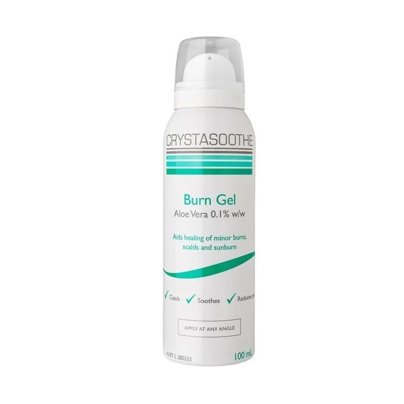 Crystasoothe Burn Gel is a water-based gel containing aloe vera for minor burns, scalds, and sunburns.
