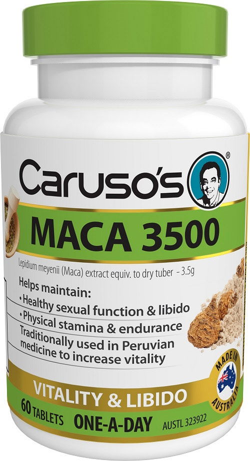 Caruso’s Maca 3500 helps to support the general health and wellbeing of both women and men. It can help to support the emotional wellbeing of menopausal women by reducing menopausal symptoms such as moodiness and mood imbalances. It can also help to promote a healthy libido, whilst supporting sexual function and physical endurance.