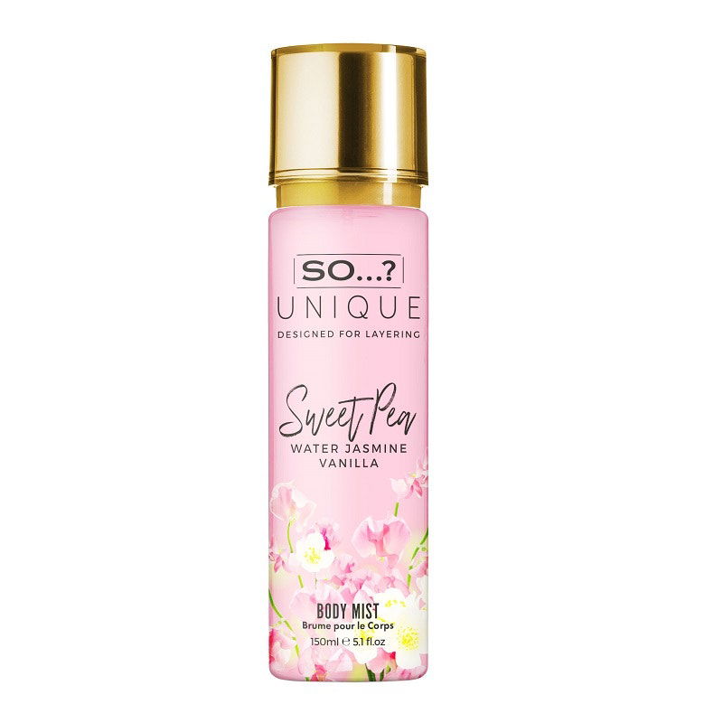 A sweet and romantic scent - our So…? Unique Sweet Pea Body Mist marries delicate floral notes of violet leaves and water jasmine, before revealing a layer of sweet vanilla.