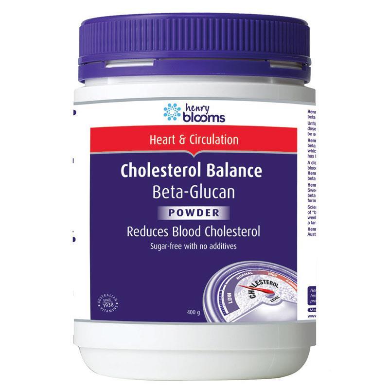Henry Blooms Cholesterol Balance Beta-Glucan Powder 400g (Bonus CoQ10 150 Aquacelle Cap X 4 - 1 per order - Australia Only•) provides high quality betaglucan in a convenient powder to reduce blood cholesterol naturally.