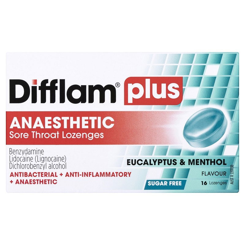 Difflam Plus Anaesthetic Sore Throat Lozenges have a triple-action antibacterial,  anti-inflammatory,  anaesthetic formula for fast numbing relief of a sore throat.