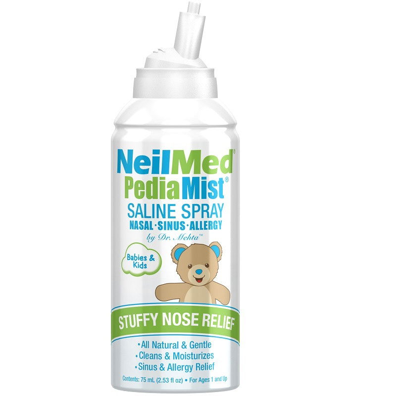 NeilMed PediaMist Saline Spray for small noses is an Isotonic, sterile, natural soothing saline spray.