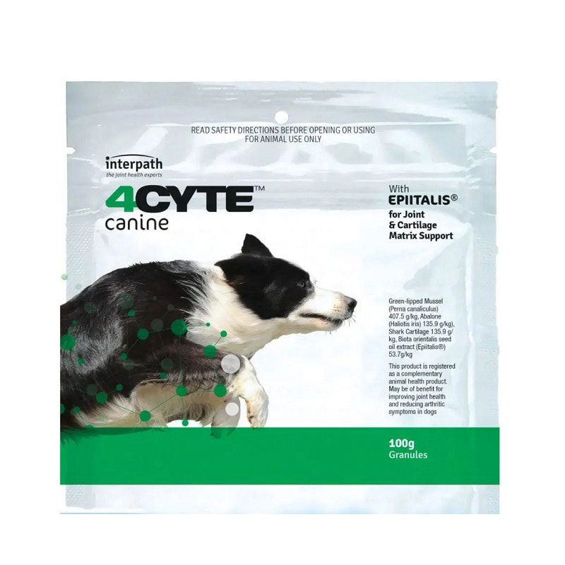 Featuring EPIITALIS, a breakthrough plant oil extract patented for its unparalleled ability to stimulate chondrocyte cell proliferation, this oral supplement is designed to repair and regenerate cartilage, making it ideal for managing mild to moderate Osteoarthritis (OA) and post-surgery recovery. Combat stiffness and enhance your dog's agility with ease, as these flavourful granules ensure effortless administration and long-term joint care. Trust 4CYTE Granules to keep your furry friend bounding with vitality, available for purchase in Australia.