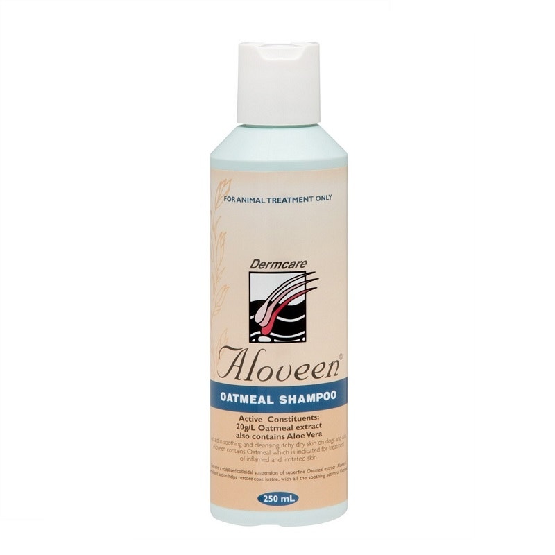 Aloveen Oatmeal shampoo is a gentle, soap free cleanser containing oatmeal and aloe vera for animals with normal and sensitive skin.