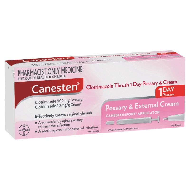 Canesten Once Pessary & Cream contains 1 pessary, which is a tablet inserted high into the vagina to effectively treat vaginal thrush (vaginal candidiasis), plus soothing cream for relief from external itching and soreness. Vaginal thrush is a common infection caused by a yeast-like fungi. Symptoms may include itching, burning and a white odourless discharge.Canesten Once Pessary & Cream contains 1 pessary, which is a tablet inserted high into the vagina to effectively treat vaginal thrush (vaginal candidiasis), plus soothing cream for relief from external itching and soreness. Vaginal thrush is a common infection caused by a yeast-like fungi. Symptoms may include itching, burning and a white odourless discharge.