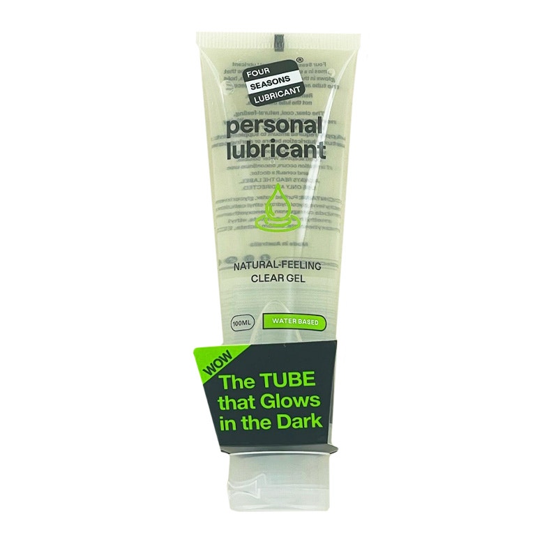 Smooth and Sensuous Four Seasons Personal Lubricant comes in a unique tube that lights in the dark. For optimal results, hold the tube in front of a strong light for thirty seconds. Remember, the tube, not the lubricant, glows!