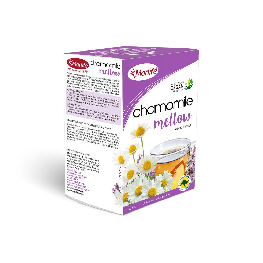 Morlife's Chamomile Mellow has been naturopathically formulated to bring a nourishing and fruity tea perfect for anytime of the day.