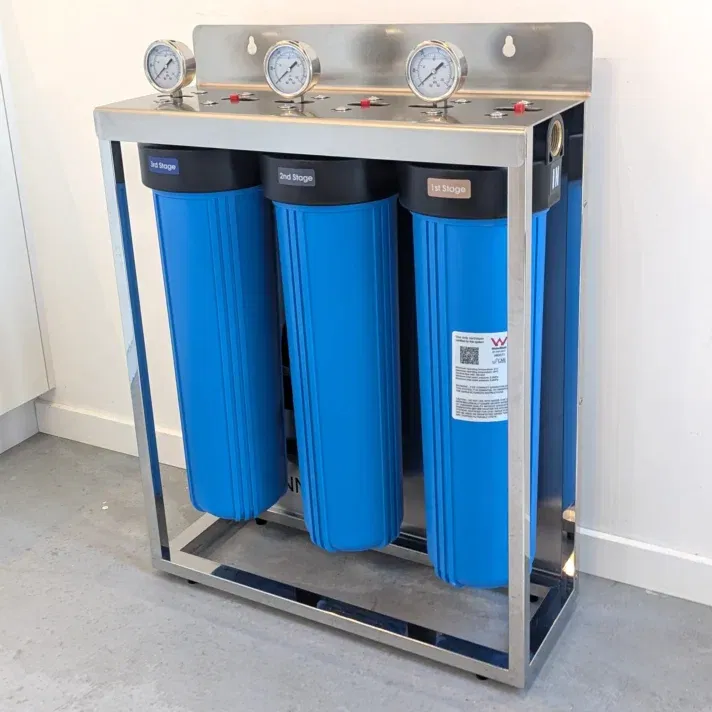 Stage 1: 5-micron sediment filter – removes dirt, rust, and particles