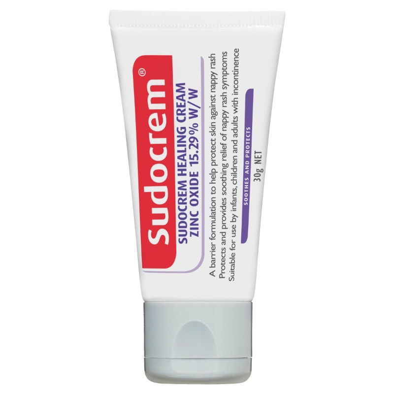 Sudocrem Healing Cream has been parent's simple, effective ally for over 20 years to assist in the management of nappy rash. Sudocrem is a zinc-based emollient cream that soothes and protects skin. Sudocrem provides a barrier between the skin and substances known to cause irritation such as all forms of moisture but specifically urine and faeces which contain irritating chemicals. Sudocrem 30g tube is perfect for the nappy bag or when on-the-go. Sudocrem 30g tube is perfect for the nappy bag or when on-the-go.