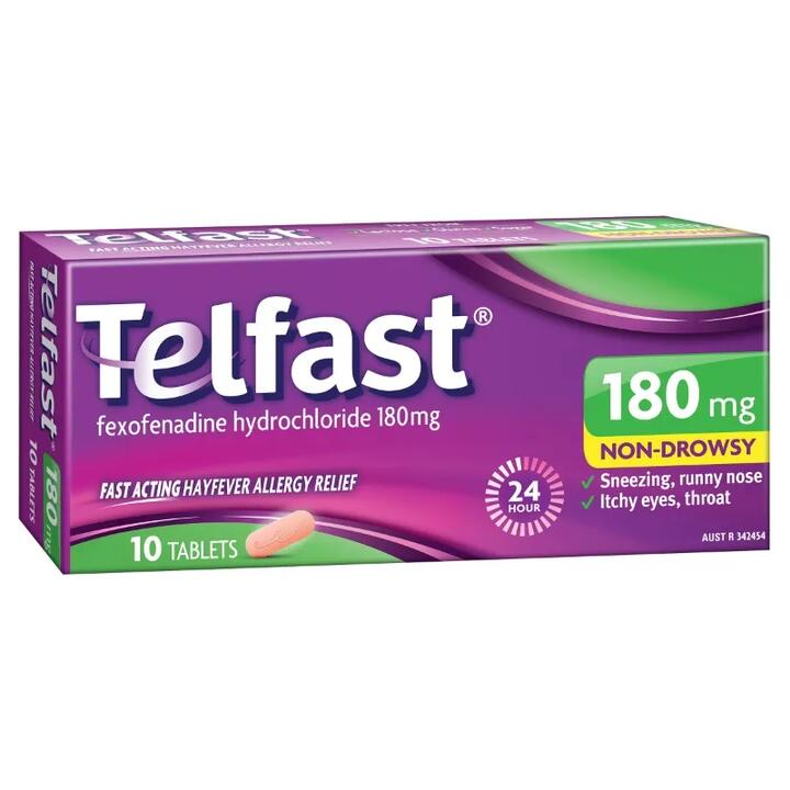 Telfast 180mg Non-Drowsy Fast Acting Hayfever Allergy Relief Tab X 10