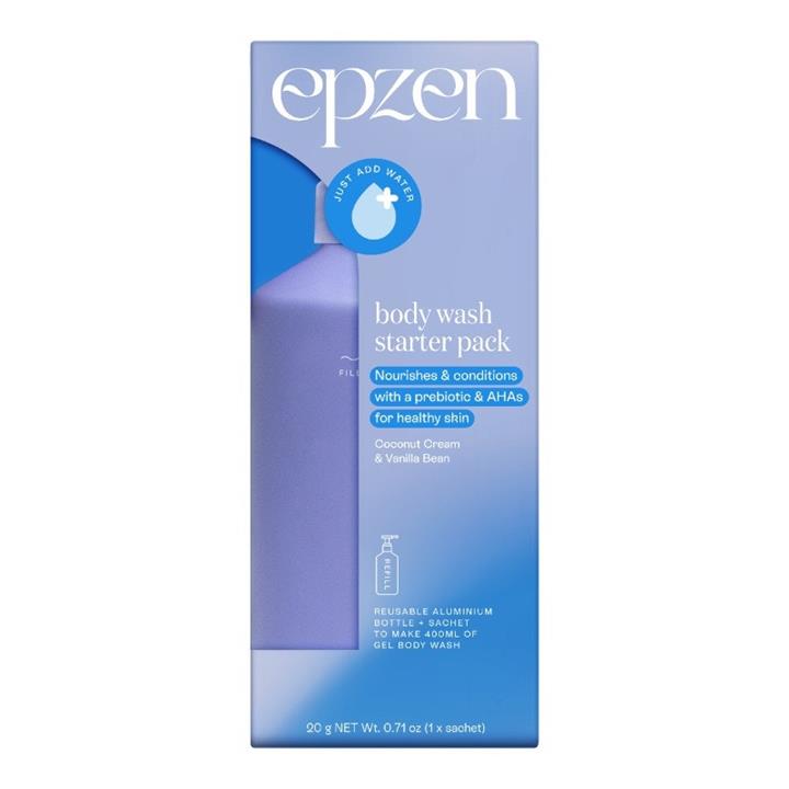Epzen Body Wash Powder-to-Gel Starter Pack - (Coconut Cream & Vanilla Bean) Bottle + Sachet 20g