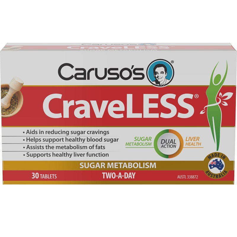 Caruso's CraveLESS is a 2-in-1, bi-layer tablet with key ingredients that support healthy liver function and glucose metabolism, and also helps to reduce sugar cravings. Caruso's CraveLESS may be used alongside a downloadable, easy to follow, healthy eating and exercise plan.