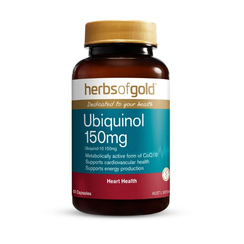 Herbs of Gold Ubiquinol 150mg contains ubiquinol-10, the metabolically active form of coenzyme Q10 (CoQ10) that is ready for use in the body.