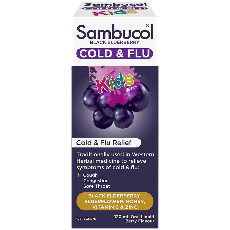 Sambucol Black Elderberry Cold & Flu Relief Kids is formulated with Elderberry & Elderflower, traditionally used in Western Herbal medicine to relieve symptoms of common colds & flu including: