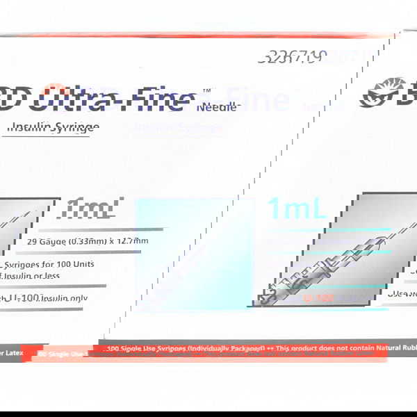 BD Insulin Syringe Ultra-Fine Needle 29 Gauge (0.33mm) X 12.7mm X 100