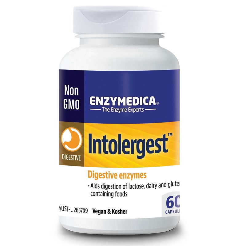 Food intolerances can be caused by enzyme deficiencies. Intolergest contains a combination of enzymes that provides specialised digestive support for individuals who experience intolerance to foods containing gluten (found in wheat, rye, barley and oats) and dairy. For many individuals, eating these foods often create digestive discomfort.