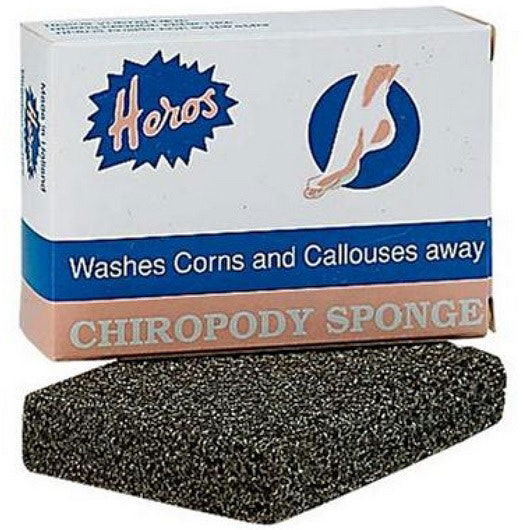 With one gentle treatment, the Heros Chiropody Sponge removes painful corns, ugly callouses, horny and rough skin. Its use assists local circulations and helps to keep filling fit.