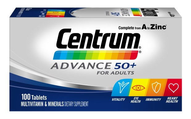 Centrum Advance 50+ is designed to give your body the right nutrients at the right levels as you get older to help fill nutritional gaps in your diet. With the added benefit of Lutein for healthy eyes, and Lycopene for a healthy heart, Centrum Advance 50+ is complete from A to Zinc.