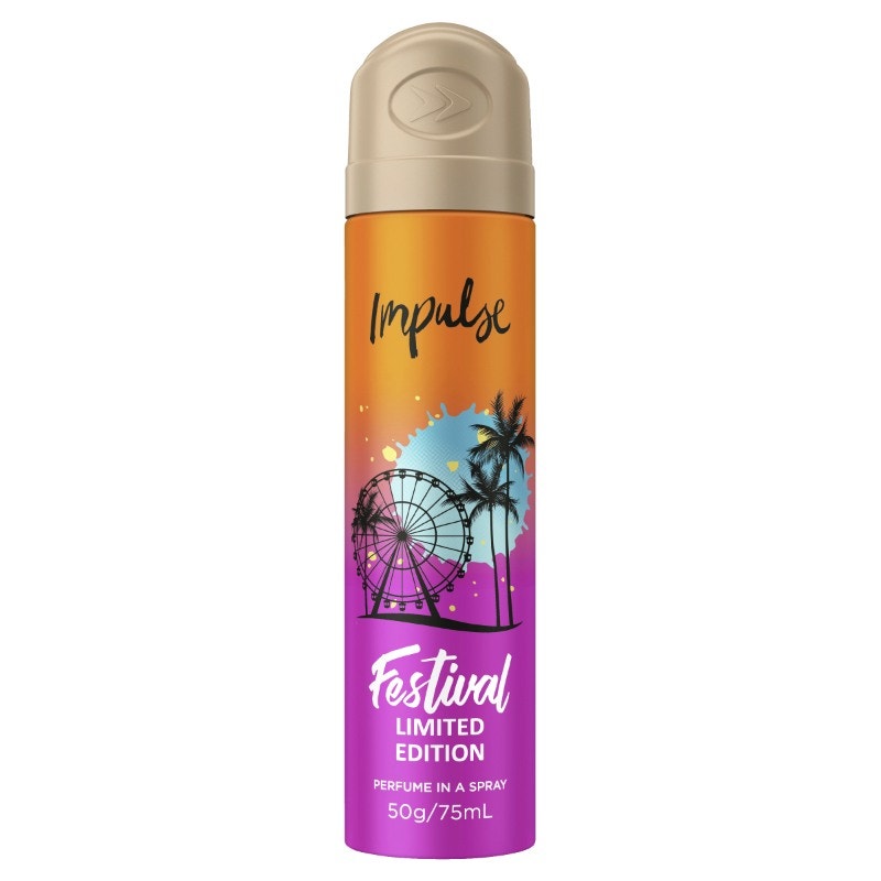 Impulse Body Spray Aerosol Deodorant Festival Summer Edition is a fun fragrance for those moments when you want to be spontaneous and let yourself go! Be inspired by this uplifting fragrance and dance to your own beat.