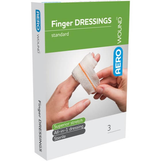 AeroWound Finger dressing is a highly absorbent dressing designed for the application to finger wounds. The wrapping leader is easy to use for applying compression with a fixation strip included.