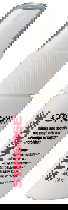 Stingose Spray PackHelps to minimise the pain, inflammation and itching associated with stings and bites of most insects and plants, including ants, bees, wasps, mosquitoes, sandflies, sea lice, vines and nettles.WarningsAlways take normal First Aid precautions such as the use of ice and water.Do not pre-treat with methylated spirits. In serious cases seek medical advice. Keep out of eyes.