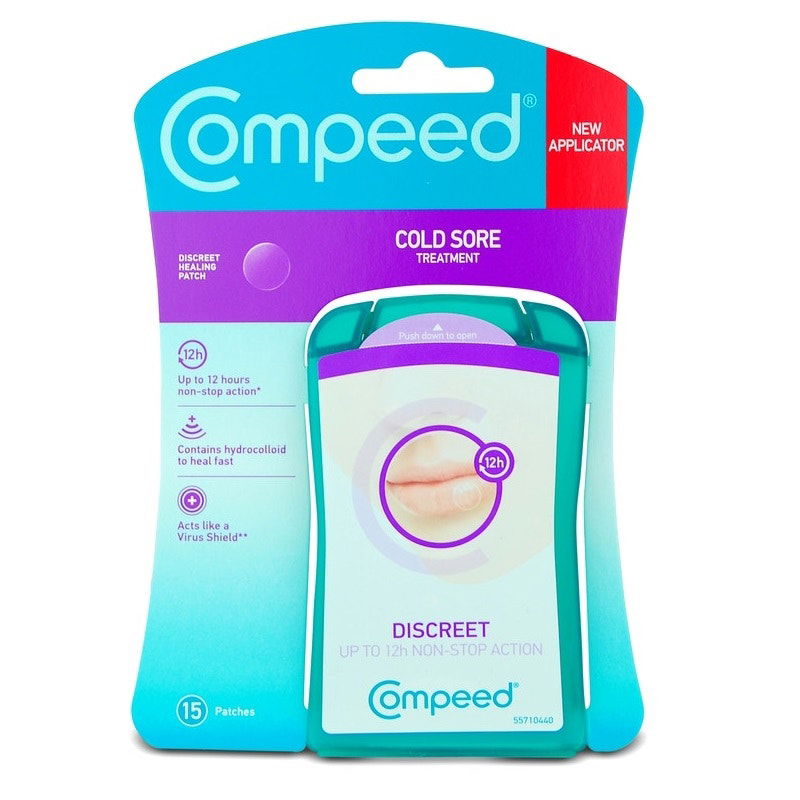 Compeed Cold Sore Patch uses Hydrocolloid technology to heal the cold sore without the need for Antiviral creams.