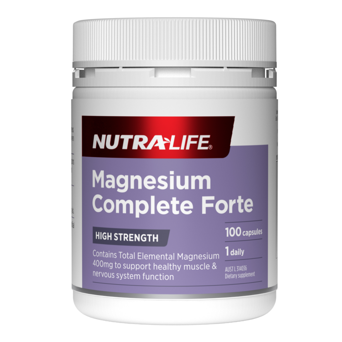 Nutra-Life® Magnesium Complete Forte is a high strength, one-a-day Magnesium supplement that delivers 400mg of elemental magnesium.