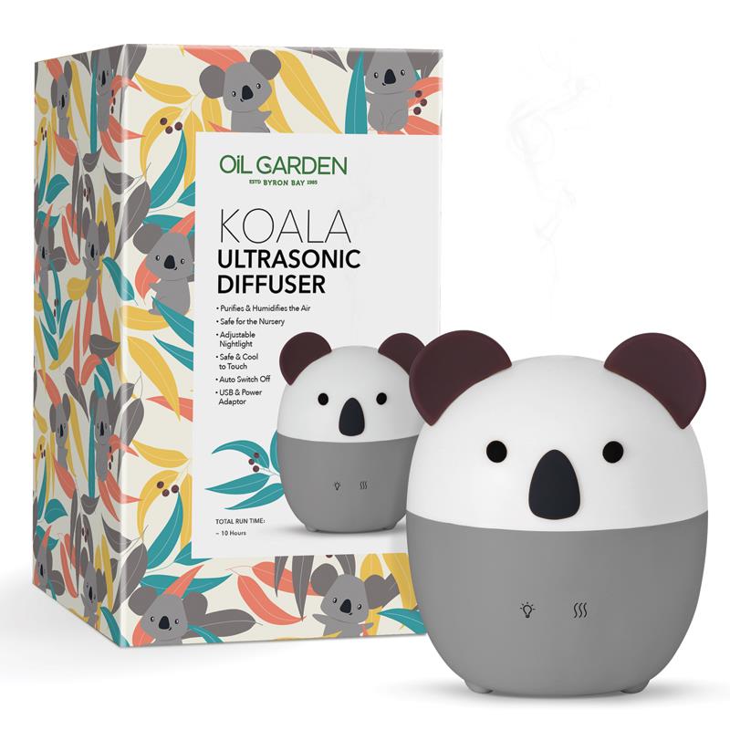 Discover the power of nature in a bottle and the endless benefits of ultrasonic diffusion. The Koala Ultrasonic Diffuser from Oil Garden doubles as a nightlight and is whisper quiet, making it ideal for use in the bedroom or playroom. The Koala Ultrasonic Diffuser uses ultrasonic technology, allowing you to experience Oil Garden Pure Essential Oils in their purest form, making it safe for you and your family.
