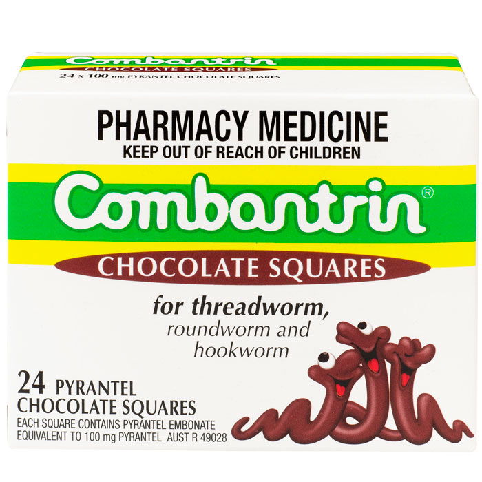 Combantrin Chocolate Squares made with real milk chocolate for the treatment of threadworm, roundworm and hookworm