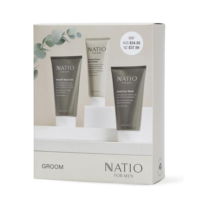 The perfect set for the modern man. A hassle-free regime featuring three full sized, top-selling formulations enriched with nourishing naturals to leave skin clean, smooth and relaxed: Natio For Men Daily Face Wash, Firming Face Moisturiser and Smooth Shave Gel, presented in a Natio gift box.