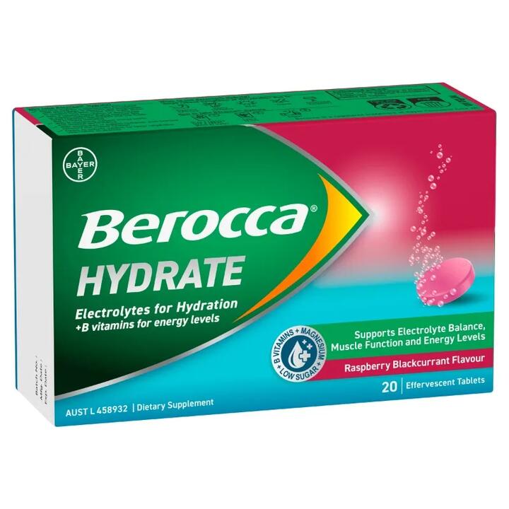 Berocca Hydrate Electrolytes + B Vitamins Effervescent Tab (Raspberry Blackcurrant) X 20