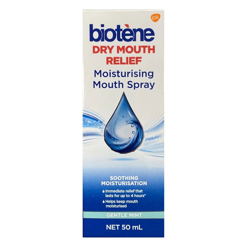 Biotene Mouth Spray contains a mouth moisturising system to help maintain the oral environment and provide relief from dry mouth symptoms.