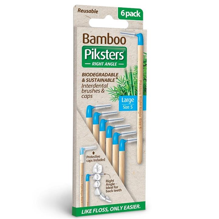 Piksters Bamboo Right Angle Interdental Brush (Size 5 - Blue) X 6