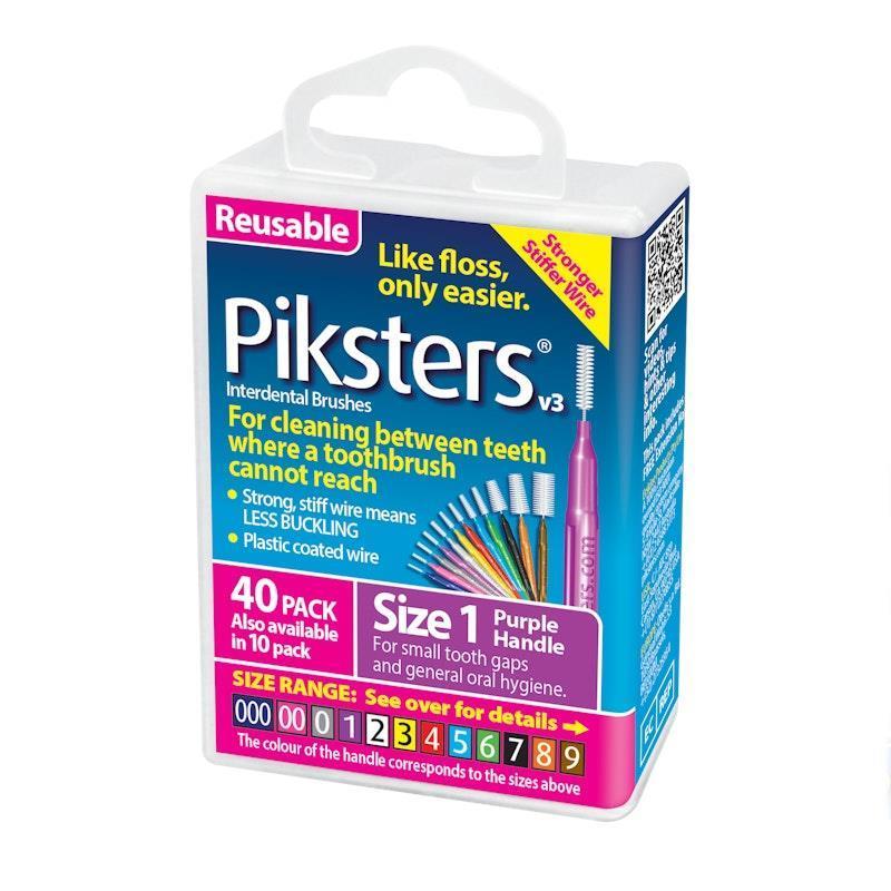 Piksters Interdental Brushes are durable for reuse like a toothbrush. Made with superior, strong wire to help prevent buckling. Value bulk pack with 40 Piksters Interdental Brushes.