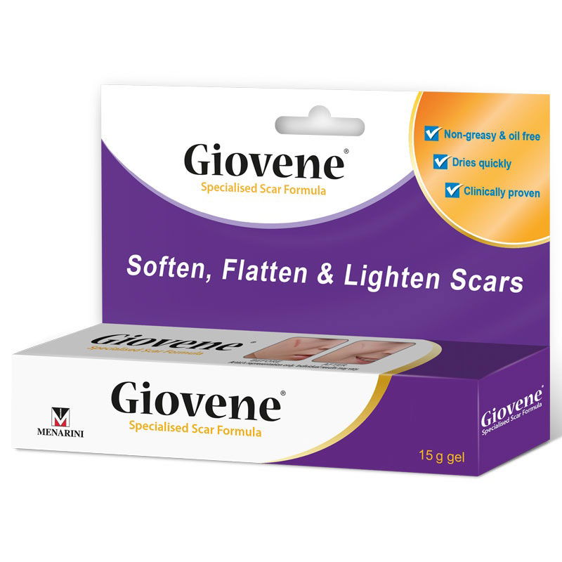 Giovene contains an innovative cyclic and polymeric siloxanes (CPX) technology which improves the appearance of scars by softening, flattening and moisturising the scar.