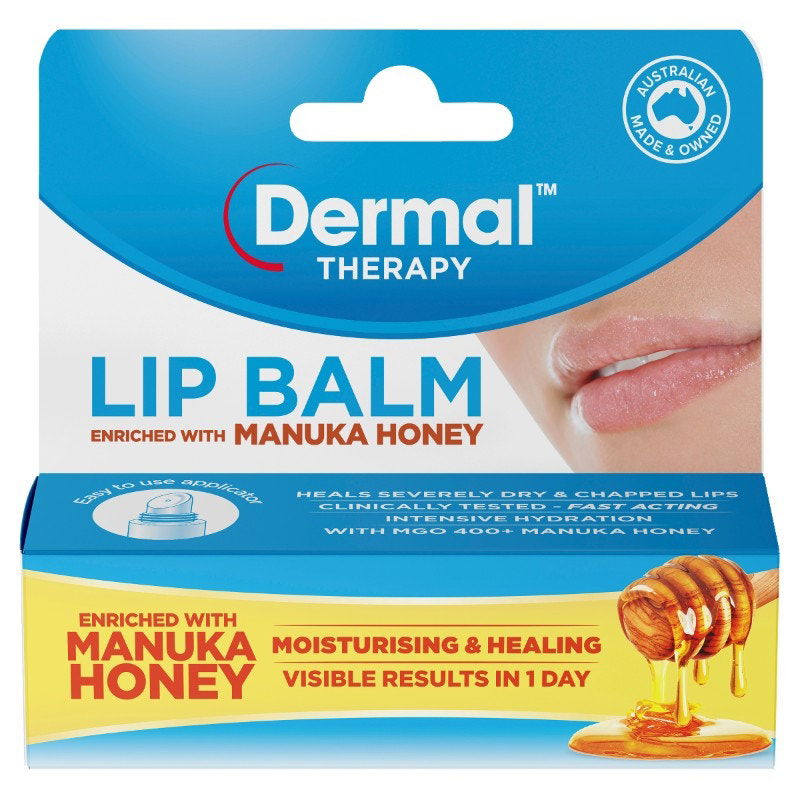 DERMAL THERAPY LIP BALM ENRICHED WITH MANUKA HONEY is a concentrated formula containing a synergistic blend of ingredients designed to heal and hydrate severely dry and chapped lips, keeping them smooth and healthy. Enriched with MGO 400+ Manuka Honey providing a healing, hydrating and soothing feeling to the lips.