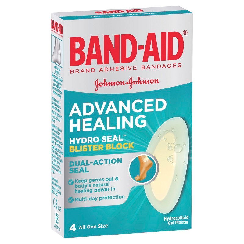 Band-Aid Advanced Healing Hydro Seal Blister Block Dual- Action Seal keep germs out & body's natural healing power in.