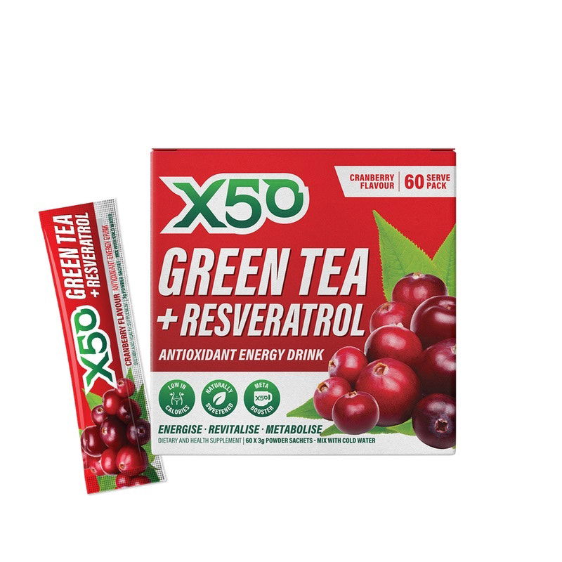 X50 Green Tea + Resveratrol Antioxidant Energy Drink Sachets (Cranberry) 3g X 60
