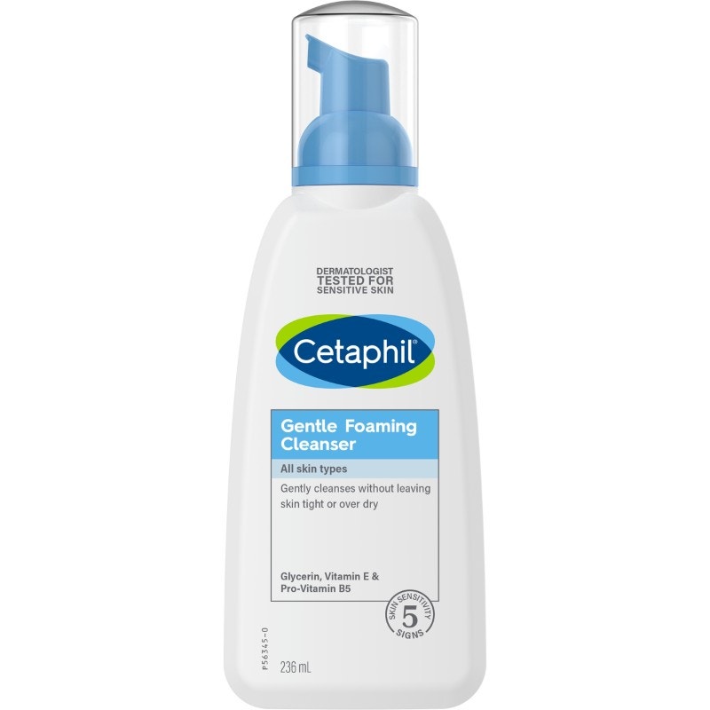Cetaphil Gentle Foaming Cleanser for all skin types gently removes dirt, oil and makeup without over-drying your skin or leaving it feeling tight. This mild foaming facial cleanser has a hypoallergenic, fragrance-free formula and is dermatologist-tested for sensitive skin.