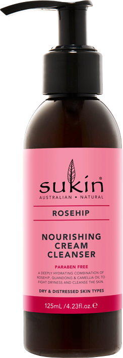 Remove makeup, oil and dirt build up on the skin with Sukin Rosehip Nourishing Cream Cleanser!
