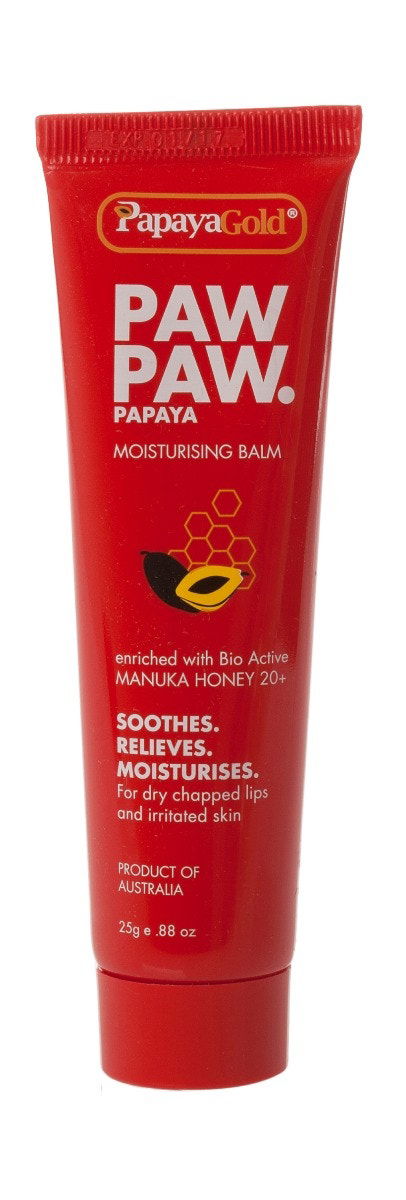 Papaya Gold Paw Paw Ointment, enriched with Bio Active Manuka Honey 20+, combines the benefits of both Paw Paw and Manuka Honey in a tropical treatment that revives, soothes and moisturised.Use it to moisturise dry, chaffed and irritated skin, and for dry chapped lips.