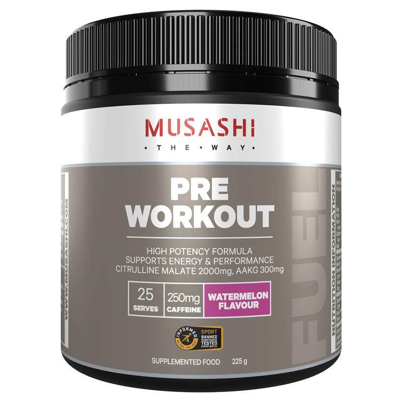 Musashi Pre-Workout is a unique formulation that contains a blend of Citrulline, Beta-Alanine, Caffeine, Creatine and Amino acids to act as a pre-workout catalyst to take your game or gym session to the next level. This refreshingly delicious blend is scientifically formulated to support your sports nutrition needs.