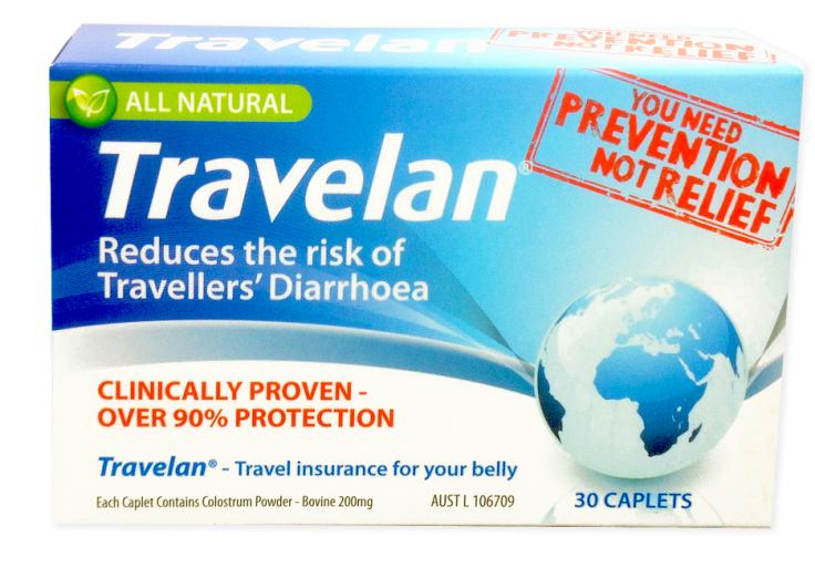 Travelan is made from colostrum; harvested from Australian dairy cows that have been immunised with a patented vaccine that was designed to produce very high levels of antibodies (specific proteins that bind to the bacteria) against the major common strains of E. coli that cause TD.