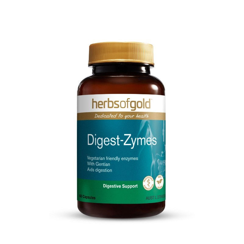 - Digest-Zymes contains Gentian, a herb traditionally used in Western herbal medicine as a bitter tonic and to relieve symptoms of indigestion, including abdominal pain, bloating and feelings of fullness.