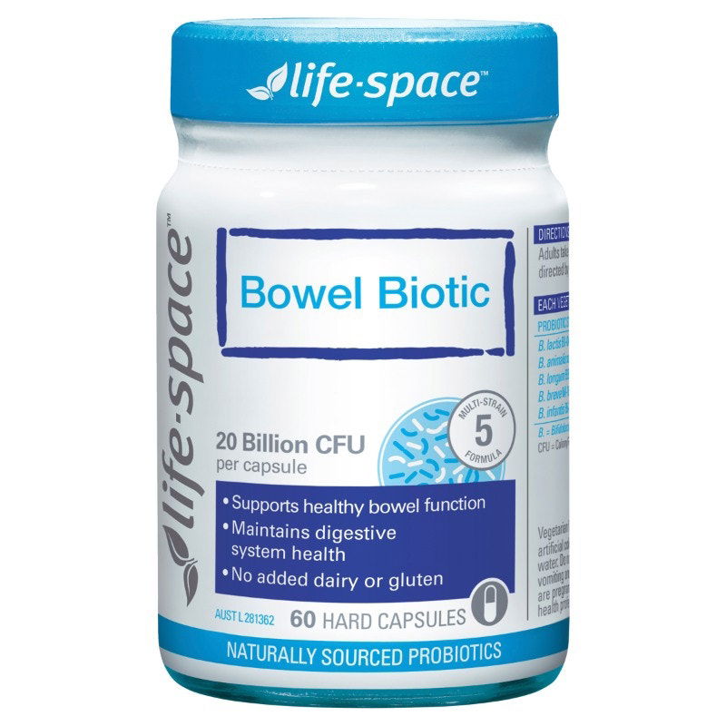 Life-Space Bowel Biotic contains 5 strains of beneficial bacteria and supports a healthy digestive system.